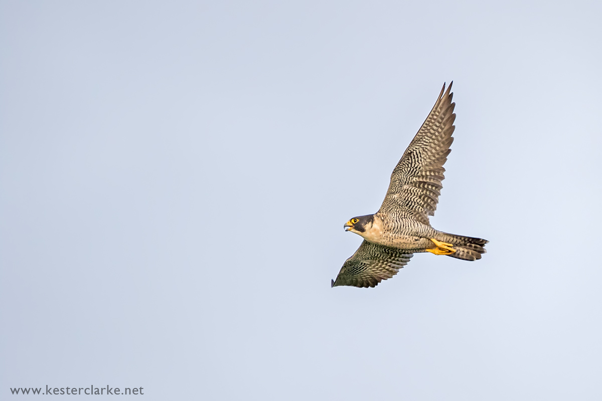 Peregrine Falcon in flight over the Mahaica River, Guyana.